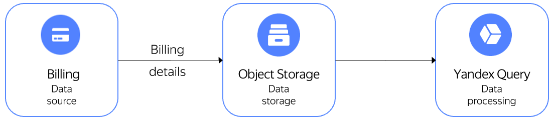 Yandex Cloud Billing and Query are integrated with each other. You can use preset queries to perform routine tasks for analyzing details of payments for resources or write custom YQL queries.