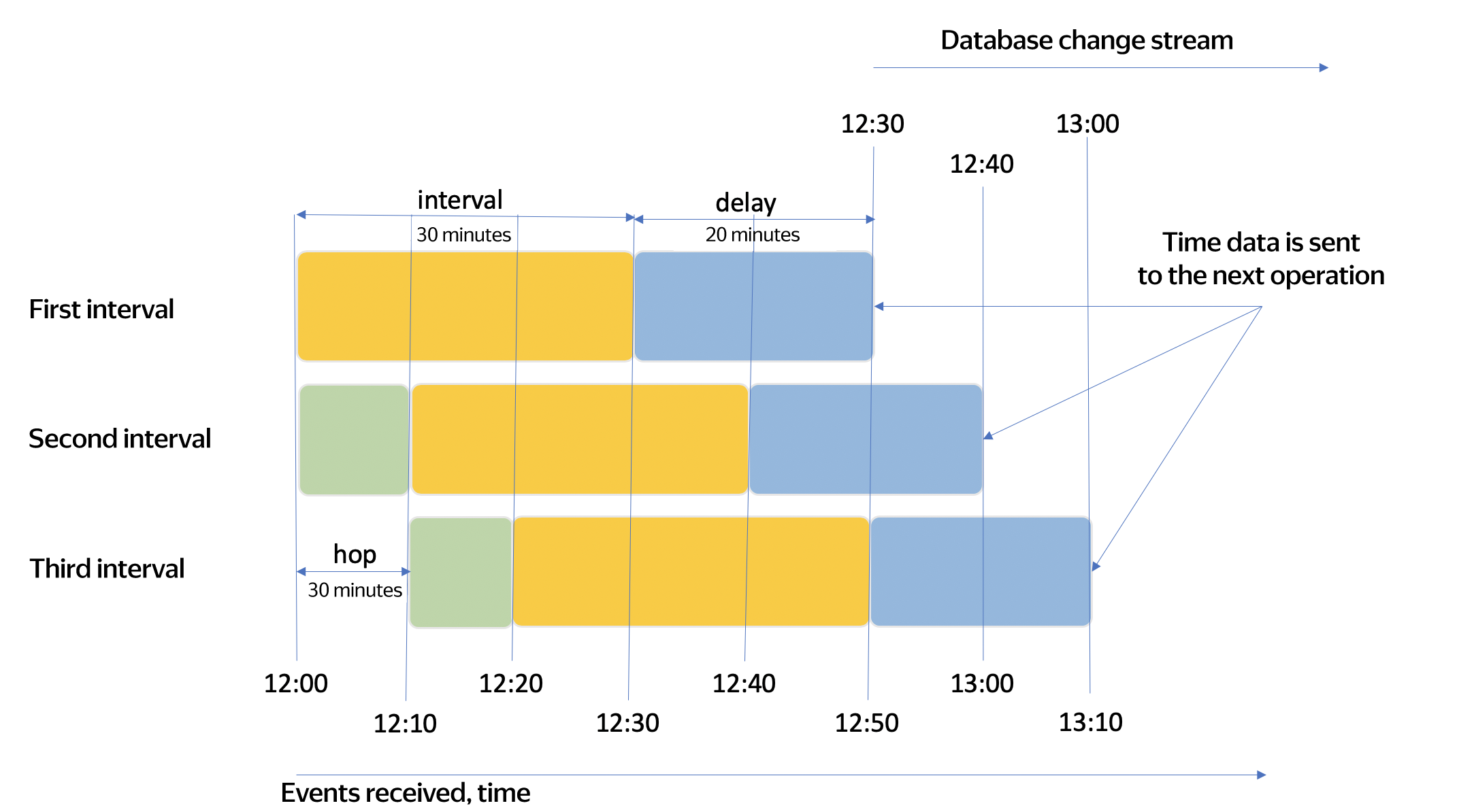 delay, is 20 minutes). The sent data will include events up to 12:30. - For the second interval, at 13:00. The sent data will include events up to 12:40.