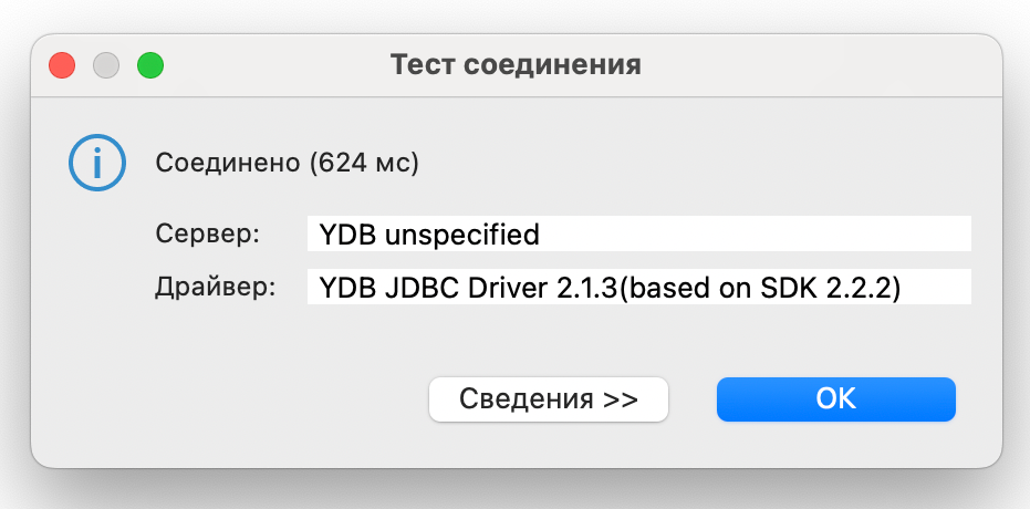 tech.ydb.jdbc.YdbDriverfrom the drop-down list.Warning