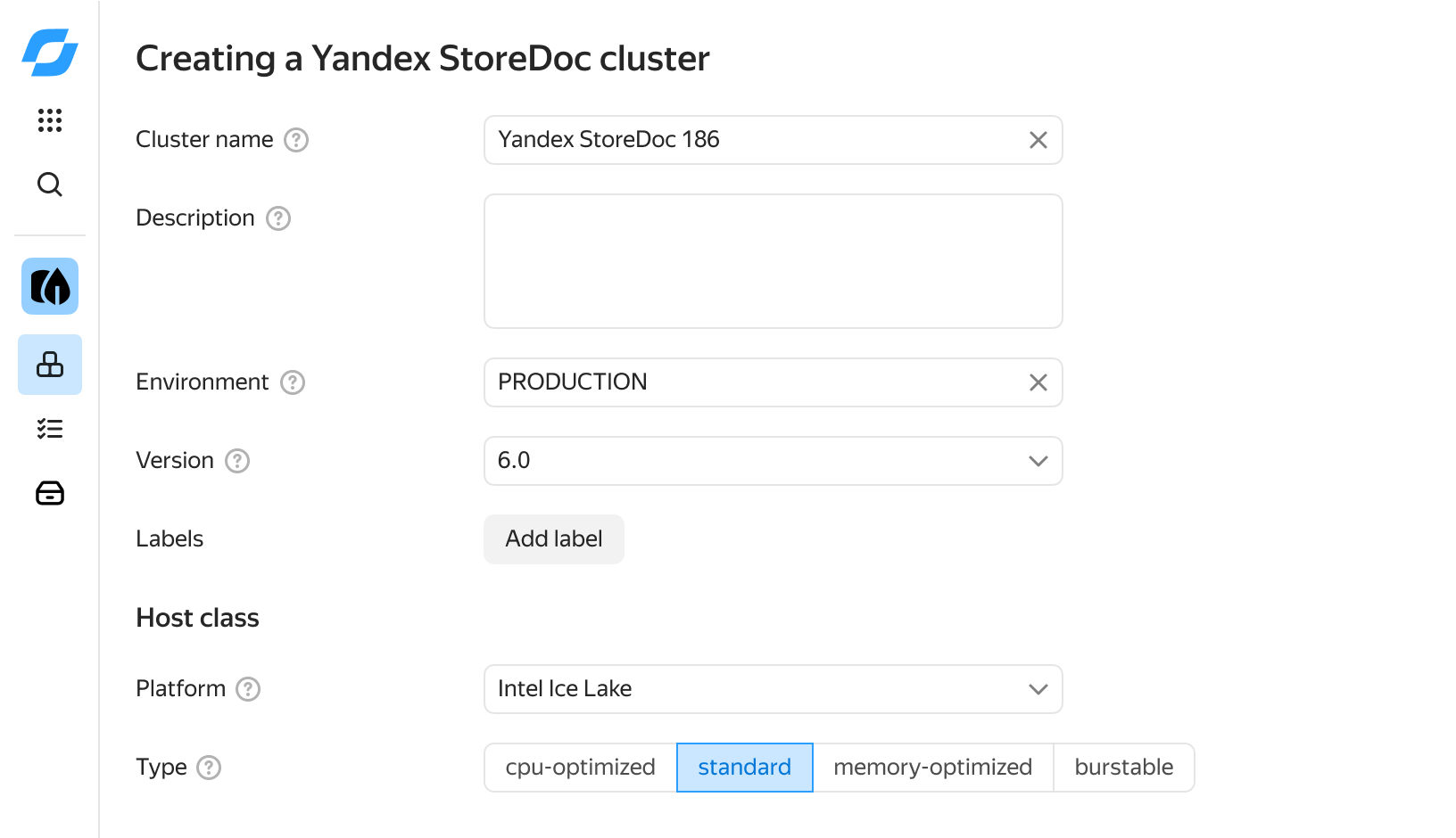 To get started, go to the Yandex Cloud console and create a Yandex StoreDoc database cluster.