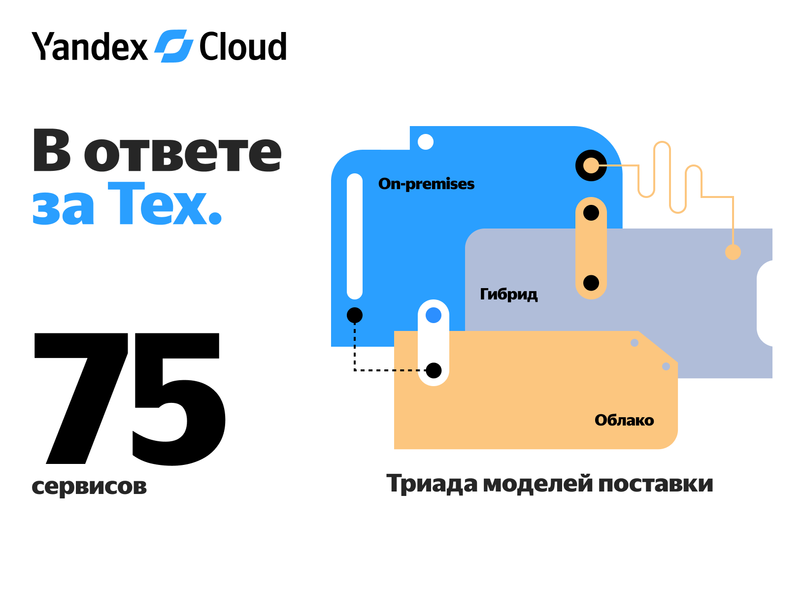 Yandex Cloud сегодня — это платформа для создания и развития IT-продуктов, объединяющая технологии и опыт Яндекса. Она включает более 75 сервисов и работает в трёх моделях поставки: публичное облако, on-premises и гибрид. В 2026 году мы представили новый логотип и визуальный стиль — редизайн отражает нашу эволюцию: от набора облачных решений к универсальной платформе для создания IT-продуктов.