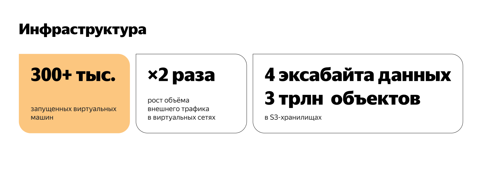 Инфраструктура Yandex Cloud продолжает масштабироваться, обеспечивая высокую надёжность и гибкость для клиентов. Сегодня в облаке работает более 300 тыс. виртуальных машин, а в S3-хранилищах платформы размещено около 4 эксабайт данных и более 3 трлн объектов.