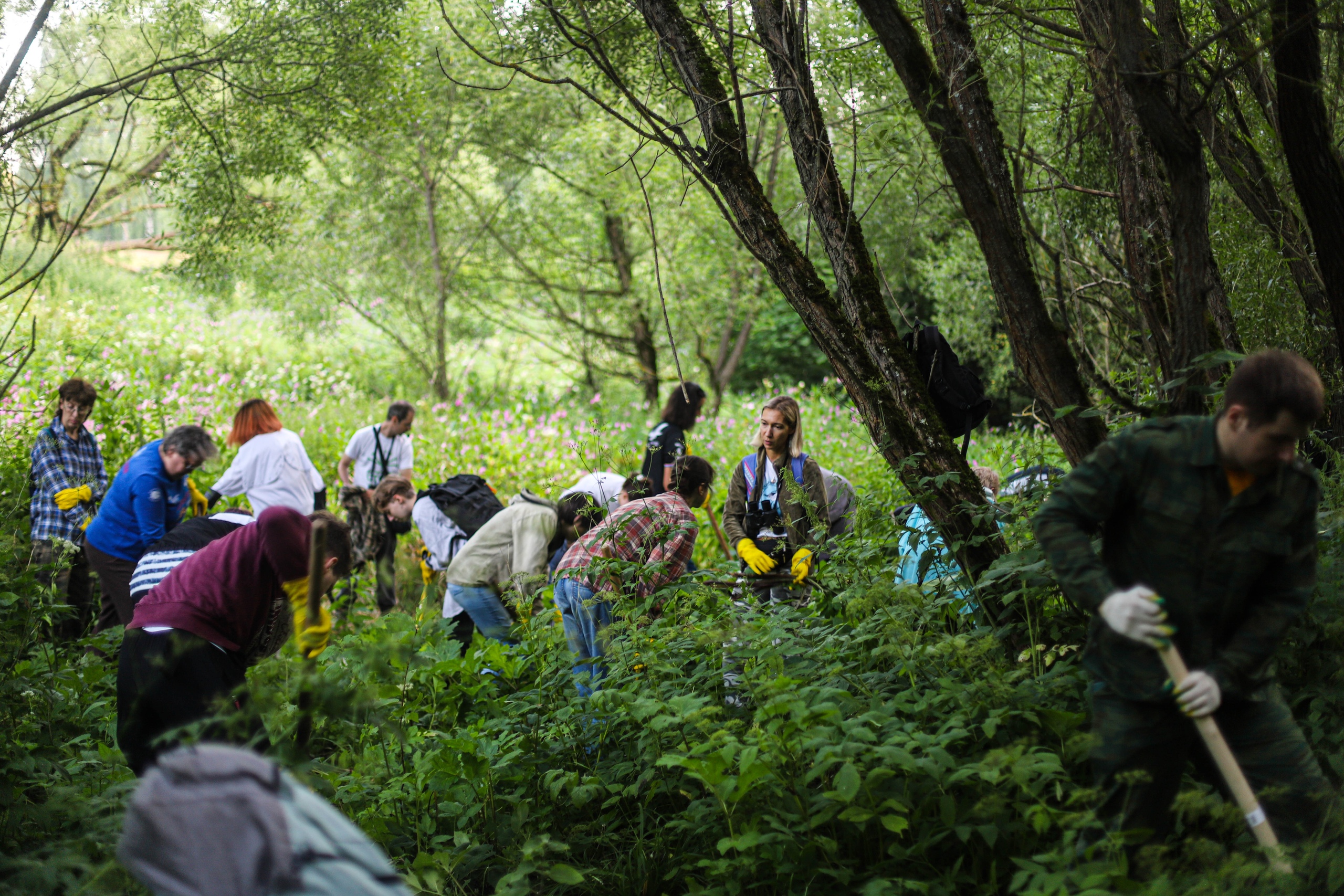 Участники движения «СтопБорщевик» на уборке борщевика в усадьбе Узкое, Москва. Автор фото: Илья Тушев