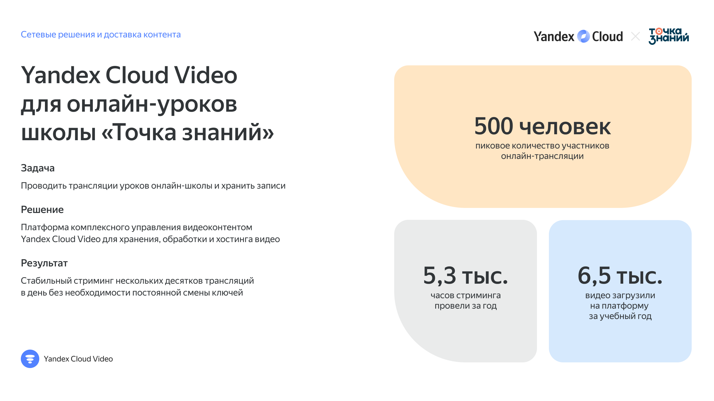 Облачные сервисы Yandex Cloud — это технологии для решения актуальных задач образования, которые отвечают сегодняшним запросам учащихся, преподавателей и учебных центров.